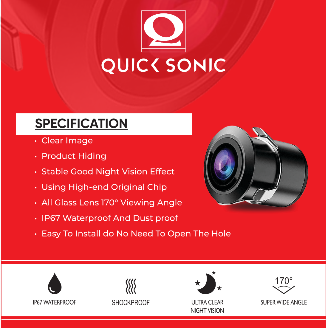 Upgrade your drive with the Quick Sonic QS-CAM120 AHD Camera – built for crystal-clear 1080P vision, even at night. Its waterproof metal body, real-time monitoring, Moving and smart parking assist make every reverse safe and effortless. Reliable, durable, and backed by a 1-year warranty.